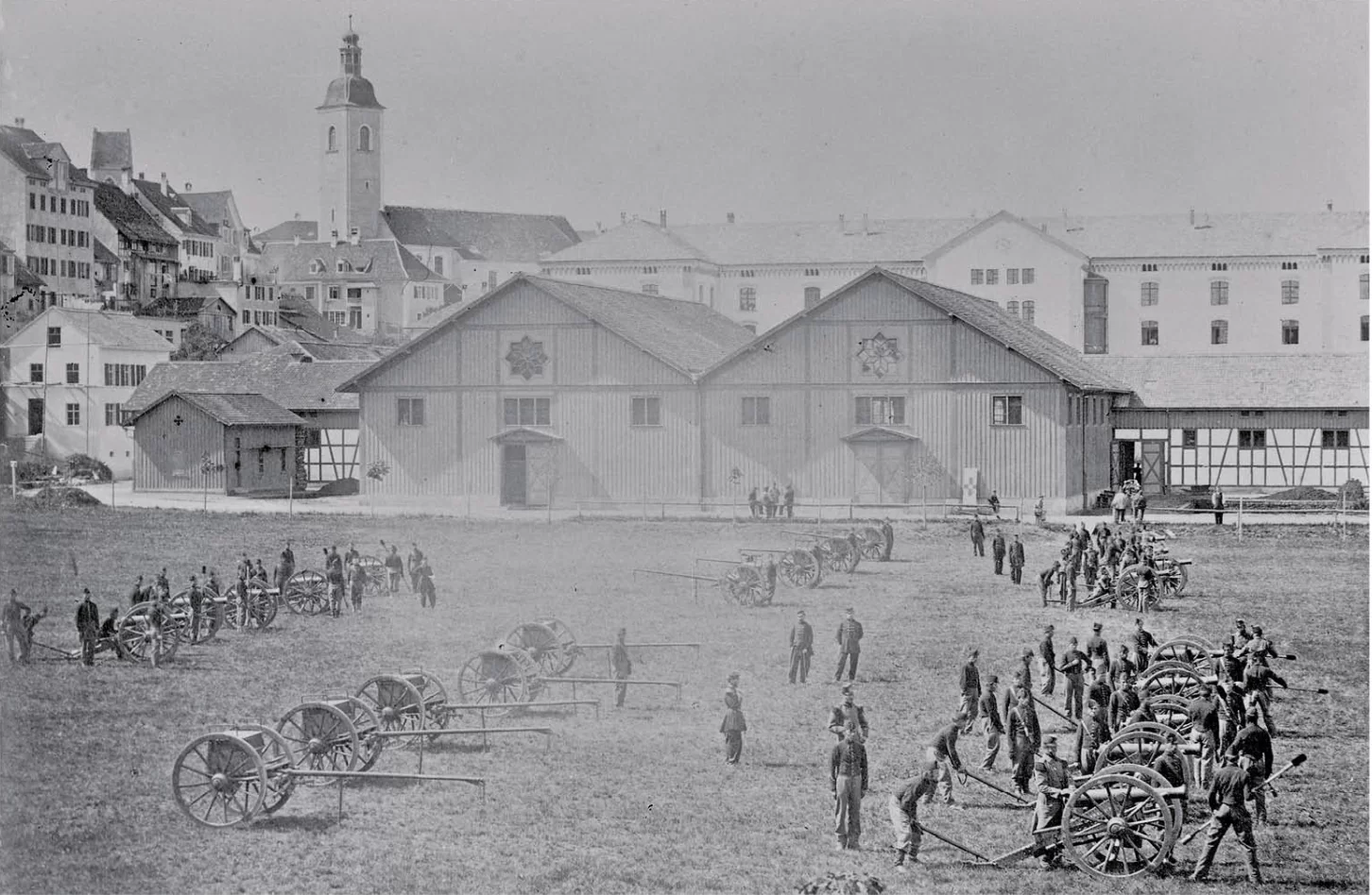 Am 10. Mai 1865 startet die erste eidgenössische Artillerierektrutenschule mit rund 300 Mann aus den Kantonen ZH, LU, SO, BL in Frauenfeld.